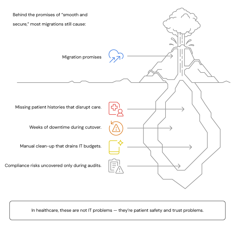When migration fails, clinicians lose confidence, regulators raise flags, and executives lose millions.